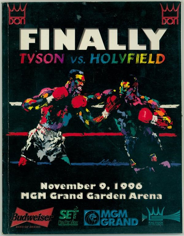 In a fight billed as "Finally" , underrated Evander Holyfield, stopped Mike Tyson on a TKO at 2:23 of the 11th round MGM Grand Garden in Las Vegas. In landing a 12-punch onslaught on a dazed and hurt Tyson, Holyfield not only claimed the heavyweight title for the third time, but also shattered the myth that he would not last past the early rounds with the heavily favored "Iron" Mike. This Program was sold on site and contains interesting articles and stories on each fighter. EX condition
