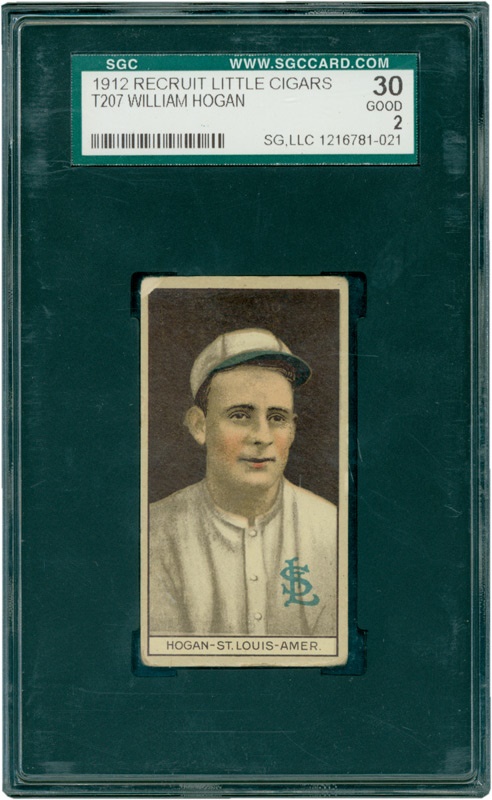 OK all of you set builders out there...Check your lists and chances are you will need this T207 rarity. It may not be the nicest example known to exist but with a card this difficult to find, it will fill that gap in one's set until a suitable upgrade is located. Stock loss to the top left corner and a light vertical crease running up from the "H" in Hogan prevent this card from grading higher.