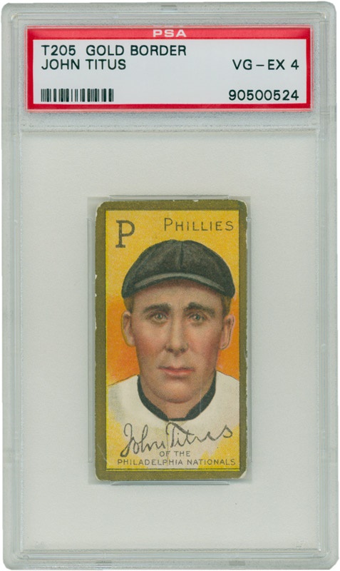 This low-mid grade tobacco card still maintains its vibrant colors in photo area. Corners show wear and are missing gold coloring. Edges show missing gold. Back is off center and border printing is slightly faded.