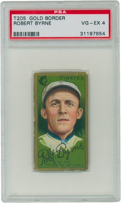 This low-mid grade tobacco card still maintains its vibrant colors in photo area. Corners show wear and missing gold. Edges show missing gold. Back is off center and shows age discoloration.