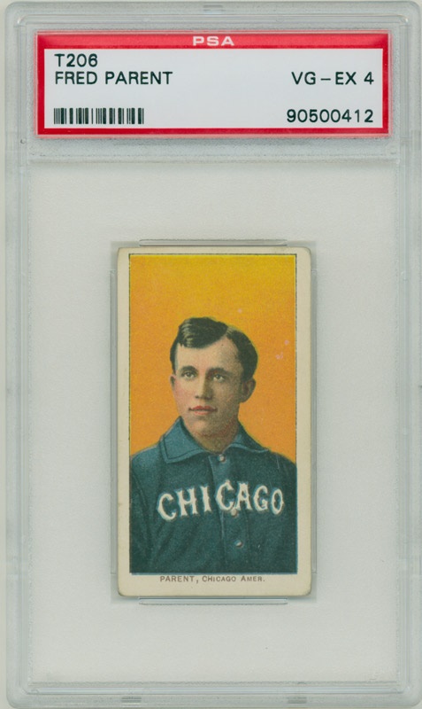 This mid grade tobacco card still maintains its vibrant colors. The corners are slightly worn. Front is off center. Back shows slight age discoloration.