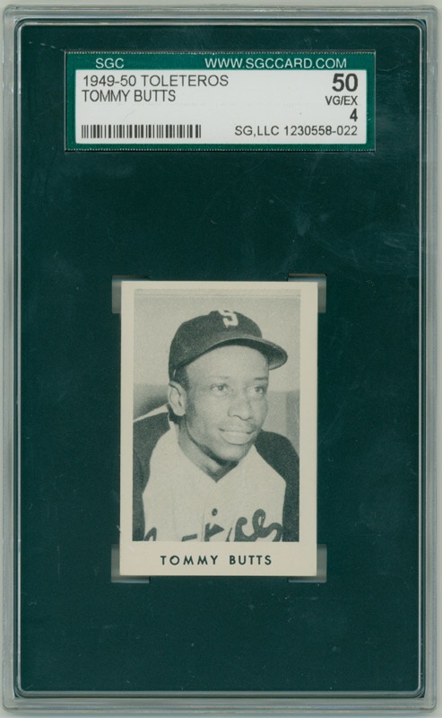 A very strong looking card of Tommy Butts, the card grads an SGC 4 because of some minor stock damage to the reverse. The NRMT book value of this card is $500.00.