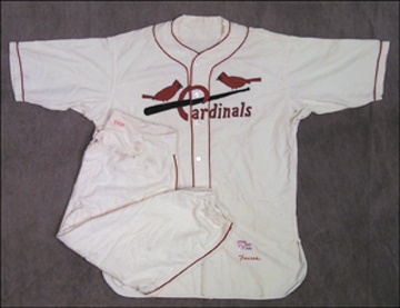 Worn by the Hall of Fame pitcher at the twenty-fifth reunion events at Sportsman's Park in commemoration of his part in the glorious victory over the Yanks in the '26 World Series. The real thing would cost you an arm and two legs--it should (and may) be in the Hall of Fame, but this perfect replica of the uniform that "Pop" wore that Championship season differs only in that the number "16" on the back wasn't present in 1926--it was obviously put there to aid in identification of the superstar for the fans in 1951. "Haines" is chain-stitched in red thread in the tail, and in the waistband as well beside the year "1926." Condition is a strong NRMT; it will look spectacular upon display in your trophy room.