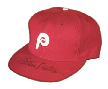 Worn on the mound by "Lefty" during the height of his HOF career. Even, sweat-stained use, with number "32" in marker under visor. "Wilson [size] 7 1/8" tag in headband. From a longtime hobbyist who got the stuff right from the source.