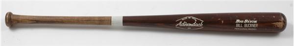 Chocolate brown Adirondack 194A bat was used by Billy Buck in the late 1970's as a member of the Chicago Cubs. #22 in white on both ends of the bat, with model number in white as well at barrel end. Minor handle crack in center of bat on the reverse. Autographed in black ball-point, but the contrast is not the best.
