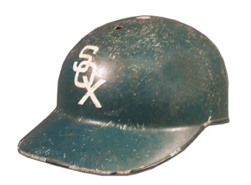 A Hall of Fame prize from the diminutive second baseman for the ChiSox. Terrific early style is flapless, with "Sox" painted above visor. Number "2" in marker on padding inside. Size 7 ?. A ton of use evident in every square inch. The perfect specimen.