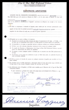 Outstanding group of "major league" contracts all for and signed by the great Cuban stars of the Negro Leagues. All measure 8.5x13", and are signed by the player, team officials and include other important data like their ridiculously low salaries (in pesos). Remember, these would have been the multi-millionaires of today. In U.S. dollars.