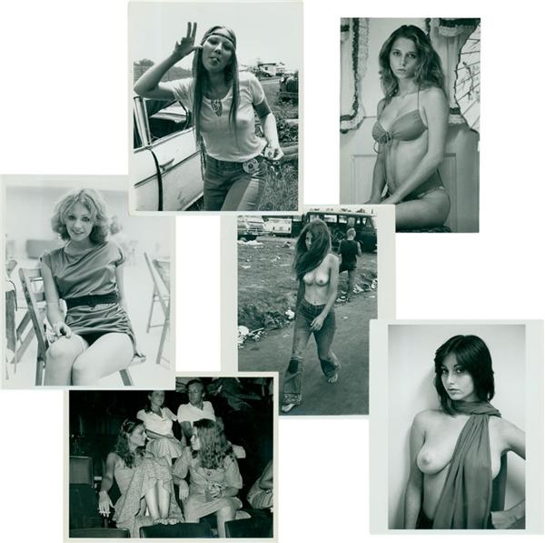 The girls in this knee-weakening Joe Sia collection of rock and roll groupies from the ‘60s and ‘70s may be nearing Social Security now, but back in the day -- wow! Example: the first in the bound volume of b&w photos and contact sheets -- a spaced-out young thing with a perfect body wandering a garbage-strewn Woodstock dirt road. Yes, being a rock star does have its benefits, and the girls here weren’t reluctant to show ‘em off in a variety of poses nude, semi-nude and clothed (happily, only a few of those), posed and candid, at rock venues public and private. We don’t know which ones found their way to Jagger, Stills, Hendrix, et. al., but any one of them could, in Mick’s words, make a grown man cry. All photos/contacts NRMT, though they’d seem so even if they weren’t.