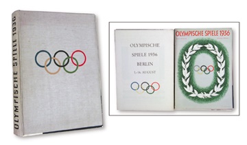 Numbers 1 thru 15 is the complete set of these gorgeous magazines created for the Berlin Olympics. From June 1935 to August 1936, they each measure a devastatingly beautiful 10x14". The covers are flawlessly magnificent! Each a work of art, they bring the Teutonic spirit that both fascinates and frightens. Each is about Thirty-two pages in length and lie in an official hardcover volume with the rings in color on the front. They are not damaged in any way by their position there; they are merely "placed." EX+.