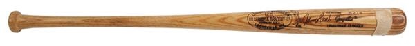 A killer Johnny Bench gamer pinpointed to an exact period here. H&B B278 has a fantastic look, with great use evident. Lots of ball and seam marks in proper location. Minor checking of wood is barely noticeable. Vintage #5 in marker on knob and barrel ends. A very small crack in handle put this out of commission late in the 1978 season. Dated lumber was put aside for the Red Gift Shop with old athletic tape affixed to barrel end (9-29-78 written on it). Nice signature in black Sharpie as well. An absolutely perfect Bench bat.