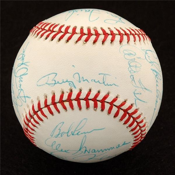 19 members of the 1977 American League All Star team have signed this bright Lee MacPhail AL ball. Billy Martin is on the sweet spot, with George Brett, Carlton Fisk, Jim Rice, Graig Nettles, Fred Lynn, Bob Lemon, Ken Singleton, Larry Hisle, Rick Burleson and Bert Campaneris some of the others present. Graded Mint 9 by PSA/DNA.