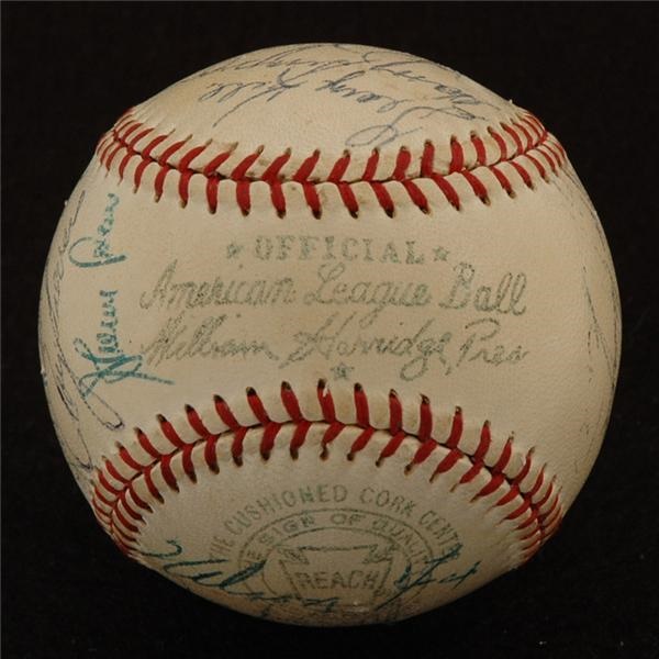 Griffith Stadium in Washington D.C. hosted the 1956 All-Star Game and the big names produced big time. Willie Mays and Stan Musial each hit two home runs for the National League. Their AL counterparts Mickey Mantle and Ted Williams did likewise. The NL captured the game by a final score of 7-3 with the help of the outstanding Cardinals third baseman Ken Boyer who had three hits and three dazzling plays in the field. Official Reach AL ball signed by league president William Harridge has the signatures of Mickey Mantle, Ted Williams, Whitey Ford, Yogi Berra, Nellie Fox, Billy Martin, Early Wynn, Chuck Dressen and George Kell. Stengel’s autograph is clubhouse. Signatures average 7/10 while ball is NRMT. Comes with LOA.