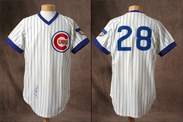Hickman played thirteen seasons in the NL for four different squads and had the honor of beginning his career with the “Can’t Anybody Here Play This Game” expansion 1962 Mets. In 1970 he enjoyed his best year when he belted 32 dingers, drove in 115 runs, and batted .315 for the Chicago Cubs. This Cubs jersey is a Wilson size 44 with “28...73...1...44” strip tag in the collar. “73” year tag also on front tail. Nice use. Signed on the front in blue Sharpie. “28” on the back and old Cubbie patch on the left sleeve.