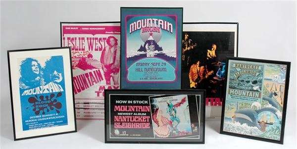 Fronted by legendary rock guitarist Leslie West, Mountain reached the musical Mountaintop thirty five years ago. They haven’t climbed down since. They came out of the sixties music explosion, and their innovative style helped create a sound that would forever impact rock music. Even today, during their 35th anniversary tour, they continue to draw on their renegade music sounds to power up their concert-going fans and charge them up and blast them off though a monsterous musical maze. Feeling like some Mississippi Queen, yet? The hit single from Mountain’s hit album “Climbing” helped set the stage. No wonder we’re so excited about this remarkable collection of Mountain posters and handbills. Decades ago, after Mountain performed at the legendary New York City concert emporium Fillmore East, Cashbox, the magazine bible of the music industry wrote, “in many ways, seeing Mountain is like getting married; you fall in love during the concert and when you come out, the world has changed.” Well, the more things change, the more they stay the same. Thanks to the estate of the family of Felix Pappalardi, we have gathered perhaps one of the most remarkable collections of early Mountain memorabilia. Including various sizes of autographed original site posters, handbills, magazine ads, billboards, framed album artwork, music festival posters and much more, including the psychedelic summer of 1970 Powder Ridge Festival (limited edition) poster which not only starred Mountain but featured a weekend of live music from other legends including Sly & the Family Stone, Janis Joplin, Joe Cocker, Fleetwood Mac, The Guess Who, James Taylor, Grand Funk Railroad...and on and on and on. Thirty five years later, we invite you to climb that musical mountain with the one and only Mountain and claim a collection of rock memorabilia that will definitely take you higher than cloud nine! LOA included.
