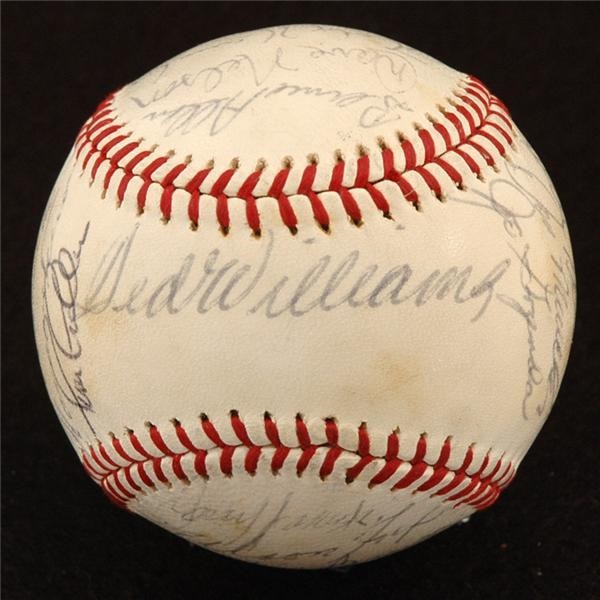 Ted Williams on the sweet spot, Nellie Fox, Frank Howard, Dick Bosman, Bernie Allen and others; a total of 23 signatures. 1971 was the last season for this franchise in Washington (they became the Texas Rangers for 1972). Official AL Cronin ball is white but has some spots of toning. Signatures average 7/10.
