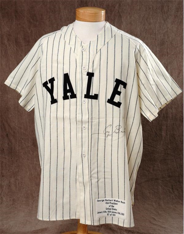 What do you get when you put a former Republican President together with a former Democratic President? You get two remarkably rare signed pieces in one politically correct collection. On March 3rd, 1997, the 41st President of the United States (and father of the soon-to-become 43rd President) participated in a Private Signing Session in Houston, Texas. Former President George Bush autographed this Yale Commemorative Jersey, part of a limited edition of only 100. The handsome pinstriped jersey, size XL was made by Mitchell & Ness of Philadelphia. The signature “George Bush” is in black ink and is on the front of the jersey just below the big Yale lettering. On the lower right is a patch reading “George Herbert Walker Bush” 41st President of the United States January 20th, 1989-January 20th, 1993.” The wording also includes the limited edition numbers: “97 of 100”. The back of the jersey has the number “2.” An LOA is included. The man who beat Bush and became the 42nd President is featured on the cover of the September 17th, 1992 issue of Rolling Stone magazine. A smiling Bill Clinton is featured in the issue in a special interview. A clean ink signature “Bill Clinton” is on the cover to the right of his face.Inside the issue is an article by publisher Jann Wenner endorsing “Clinton for President.” Any serious political collector should definitely elect to vote for this historic signature collection.