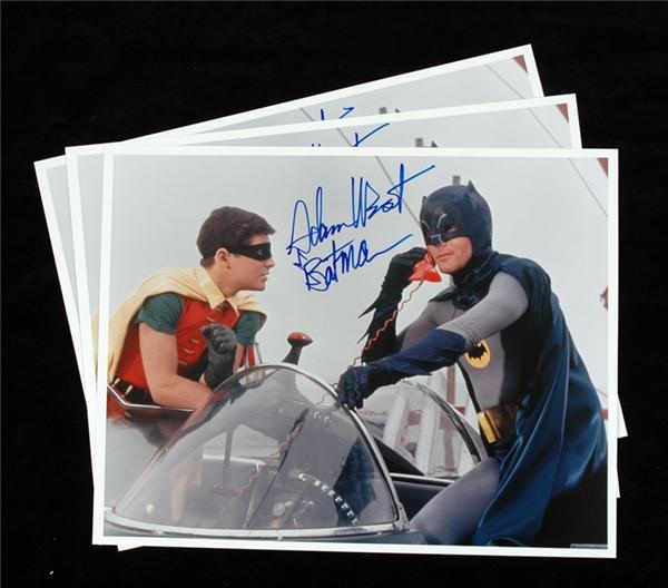Holy Autographs indeed! Beautiful 11 x 14” color prints of Batman and Robin at the Batmobile with Batman on the Batphone from the 1966 TV show are each autographed: “Adam West Batman.” Stunning photograph of Batman and Robin is a first generation from the original negative. Don’t allow these to get into the wrong hands, imagine if the Joker got a hold of these? MINT.