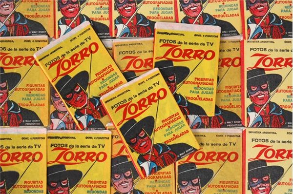 Each of these gorgeous unopened packs are a work of art unto themselves. Similar to the 1958 Topps sets these were either copied from (likely) or made in concert with Topps (less likely). Great artwork inside on the cards themselves, which are both stickers and unusual cardboard die cuts. Four cards in each pack and the greatest wrapper artwork this side of Pancho Villa. Walt Disney Productions copyright on everything (perfect!) and they are similar in size to the Topps release. Overall EX-MT and a great find.