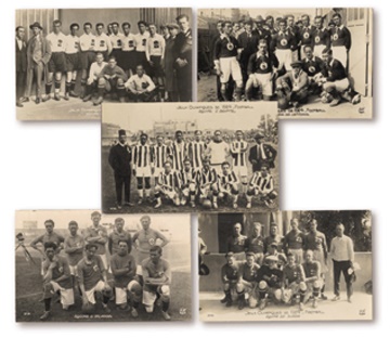 Fab group of fifteen are all real photos, and unposted. They are all team pictures of the following Olympic teams: Slovakia, Egypt, Romania, Poland, Turkey, Yugoslavia, Switzerland, Sweden Lettonie, Hungary, United States, Holland, Ireland, Estonia, and Uruguay (two years later they would win the first ever World Cup). Made in France, they are in overall EX-MT condition.
