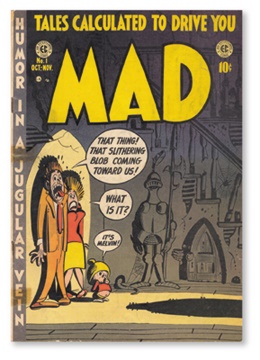 First ever issue of the brilliant satirical comic book created by Harvey Kurtzman and shepherded into a national magazine craze by publisher Bill Gaines and editor Al Feldstein. Famous cover art by Kurtzman and insides by the finest artists in the business. Some tape stains on the spine and on the verso o/w fine.