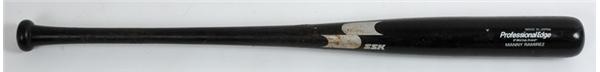 Bat wielded by one of the most dangerous hitters in baseball, Manny Ramirez. 2005 SSK PRO 650P bat is uncracked, with excellent use overall. Numerous lace marks on barrel, with still-sticky pine tar covering the entire handle. His #24 is on the knob in silver as well. This particular Manny gamer was obtained through solid Fenway source before the mid point of theis past season.