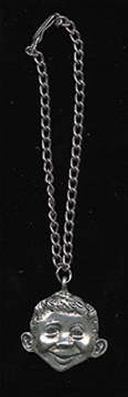 Extremely rare piece from the hotly pursued series of MAD jewelry. This is the charm bracelet with a 1.25" figural metal head of Alfred E. On the verso it reads the epic, "What Me Worry?" The MAD jewelry was sold in the back of MAD Magazine and was only available for a short period of time. Among the most highly collected of MAD pieces; they have sold for thousands of dollars. EX-MT.