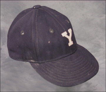 Varsity game worn cap was not actually worn by the president's pop, but by one of his teammates or fellow alums instead. Would look great in an presidential display beside a signed Bush item. White "Y" on front in felt, great quality and condition.