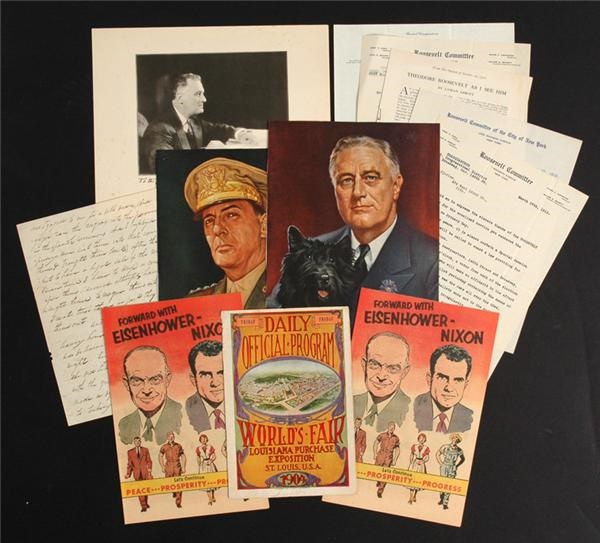 Interesting collection of American historical artifacts headlined by 2 identical Eisenhower-Nixon comic book style pieces of campaign literature. It implores us to vote Republican in order to save us from certain destruction. One part states the accomplishments of the first Eisenhower administration: “Established Health-Education-Welfare Dept. Biggest tax cut in history. Social Security increased and extended. Minimum wage increased from $.75 to $1.00. Promoted health and medical research and more hospitals” proving once again that both Parties claim both sides of the fence in every political discourse. Also, 6 letters and documents, including bills of sale for Negro slaves and a letter dated 1823, written by Taylor Berry to his uncle, Gen. James Berry, who fought with Hull’s Army. Finally, a note from Forest Sweet commenting on the historical nature of the Berry letter. Some nice glimpses into our history.