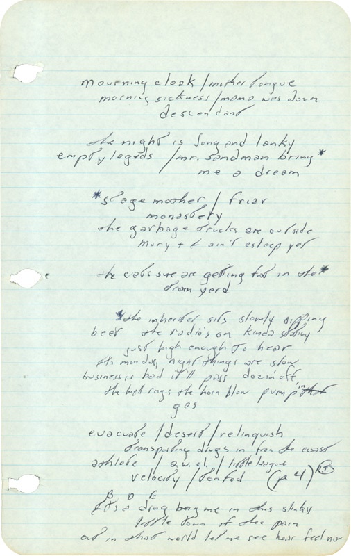 What goes on in a songwriter’s head? How does the process work? For those of us who don’t have a clue we provide a bit of insight into the creative process of the great Bruce Springsteen. We have lyrics to a song Bruce was working on, all in Bruce’s handwriting. Specifically, 26 lines of lyrics to an unpublished song of Bruce’s. There are also notes on chord changes. The writing and page (6 x 9-1/2”) are both NRMT. Page comes from a notebook that contained other writing by the Boss. A unique peek into the mind of one of the all-time greats of rock and roll. You’ll feel like you’ve reached The Promised Land after you acquire this great Bruce memorabilia.