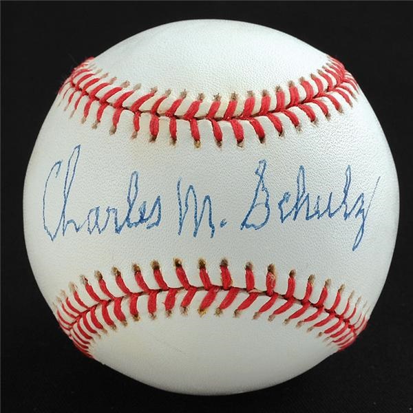 Lot # 294: In Person Charles Schulz Signed Baseball from Famed Major Leaguer