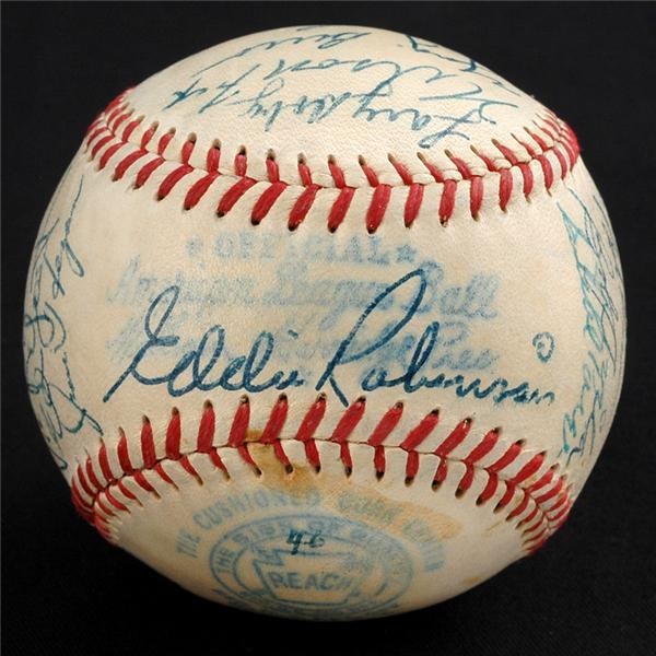 Mother Nature wasn’t interested in seeing the game go a full nine innings so she caused the game to end prematurely. She’d seen enough after just five innings so the NL got a shortened decision by a score of 3-2. The AL may have lost but they had an abundance of talent on their squad and they signed this Official American League (Harridge) baseball. Paige, Mantle, D. DiMaggio, Wertz, Garcia, Jensen, Stengel, Fox, Berra, Reynolds, Doby, Hegan, Minoso, Rizzuto, Rosen and Lemon. Twenty six signatures in total and they've been graded 9 (Mint) by PSA. LOA.