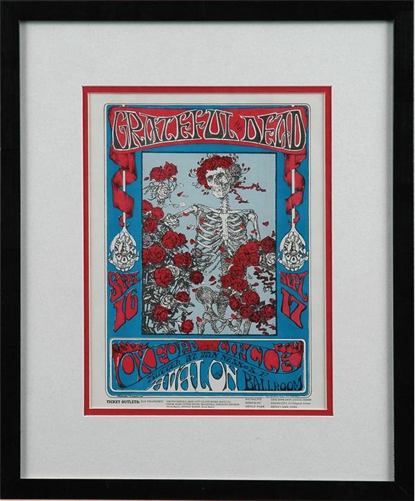 Along with the Family Dog series of posters, handbills and postcards, Bill Graham, the first to recognize the significance and collectibility of these historic works of art, promoted a long running series of concerts that produced an astounding array of poster art by many of the greatest of the San Francisco artists including Wes Wilson, Mouse and Kelley, Rick Griffin and Victor Moscoso, with several other artists creating some of the later works in the series. The hardest to accumulate of the three main collections by far remains the Family Dog - Avalons which is why we are proud to offer this rare FD#26 specimen. Created for two of the aforementioned Avalon shows (September 16 &17 1966), the 8"x11" handbill exhibits an ultra clean surface, vibrant color and incredibly sharp graphics. Created by artist Mouse/Studio 66 it is NRMT condition. Double matted and framed to 14"x17".