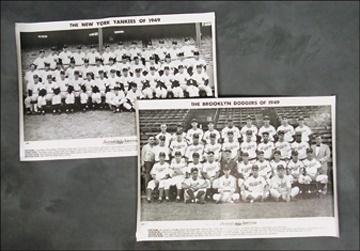 Matched pair was issued by the New York Journal-American, and is still housed in the original cardboard tube with mailing label and four-cent stamp. Creasing at the edges of the Yankee photo, otherwise each is quite close to new. Printed on medium weight paper.