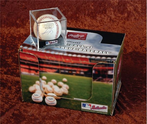 His otherworldly effort during the 2004 playoffs will be talked about by Boston fans for generations to come and two years later David Ortiz continues to terrorize opposing staff with his awesome power. Offered are four dozen (48) Official 2004 World Series Baseballs (Selig) signed by Big Papi. Each owns a perfect blue ballpoint pen autograph located right below the World Series logo on side panels. Overall condition of the individually cubed balls is NRMT-MT.