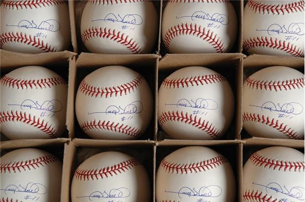 "Gary Sheffield #11" spans the sweet spot in bold, blue ballpoint ink on each one of these forty-eight Official Major League Baseballs (Selig), complete with "Sheff Authenticated" holograms. Overall both the autographs and balls themselves grade as NRMT-MINT. An incredible offering from one MLB's premiere batsmen and Yankee great.