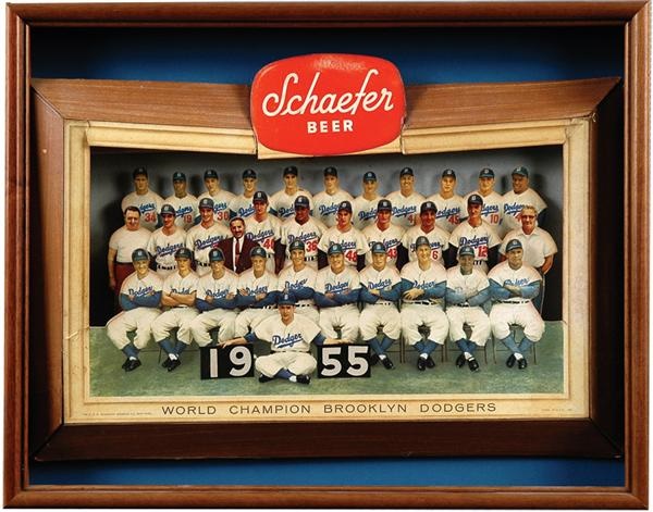 Lot # 1577: 1955 Brooklyn Dodgers Three Dimensional Schaefer Beer Advertising Sign (14x20")