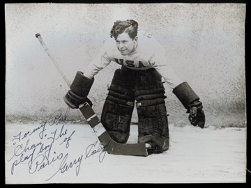 Fabulous group of vintage photographs, many in their original frames. Average is 8x10". Includes team in early NY Rangers uniforms. Signed photos of Stewart" & "Dog", several in Europe (at the Davos Hockey Club, Berlin, Switzerland), 1933 wearing Rangers jerseys in Prague before World Championship Game, and three signed photos of sporting goods entrepreneur Gerry Cosby as a player. Includes: in his 1932 U.S. National Team jersey inscribed to "The Playboy of Paris", in NY Rangers uniform, Boston Olympics signed team photo with Cosby