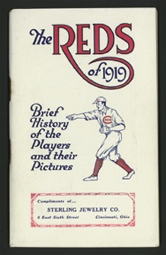 One of two known specimens of this yearbook giveaway from "Sterling Jewelry Co."(advertising on cover). Each page shows an individual player photo with their bio on facing page. There is even a recap of their crooked World Series in the back. EX-MT.