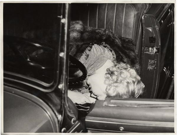 Graphic shot of the death of the film star from mysterious circumstances. Original paper caption. International Newsreel stamp on verso. EX+. 7x9”.