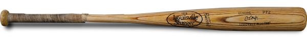 As Charlie Crawford on "Spin City", Sheen played the Mayor Winston's baseball-crazed right-hand man and shared much of his screentime with this, his trusted Louisville Slugger "C243" bat (33"). An incredible oddity in that it is actually an aluminum bat that has been hand-painted by the prop master to give the appearance of its classic wooden counterpart. All of the lettering has been painted by hand in finite detail, down to the grain lines, at a cost exceeding $2000. It displays great use, with heavily toned grip tape and multiple ball marks on the barrel. Obtained directly from Charlie Sheen.