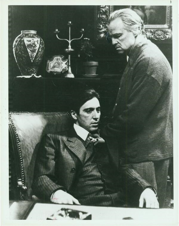 The greatest screen trilogy this world has seen, Star Wars included, (actually there were six of those). All show Pacino, Michael Corleone incarnate. There is one from I (1983 TV showing), six from II, and three from III. EX+. 8x10".