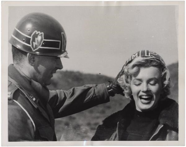 The famous trip that Marilyn made to Korea during her honeymoon with Joe. Not the best move it was the writing on the wall for their marriage. Original paper caption. International Newsreel stamp on verso. EX-MT. 7x9”. Beautiful image by Dave Cicero.