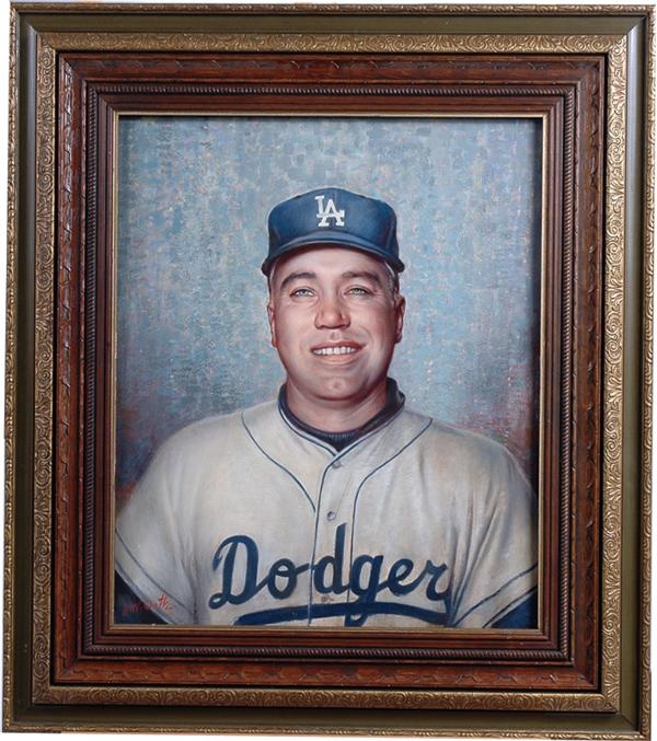We offer these exquisite pieces of original art by noted artist John W. Orth (D. 1976) featuring beloved Dodgers Duke Snider and Gil Hodges in uniform. Orth was one of the last artists from the Santa Anna, California area to paint in the style of the Old Masters. His forte was always portraiture of well known persons, as you can well see from this fine example. Some of the artist's most notable subjects included Winston Churchill, Charles Laughton and Albert Einstein. These acrylic masterpieces, worthy of Cooperstown and of the highest quality both in form and condition, are beautifully custom framed to 30”x34”. EX-MT.