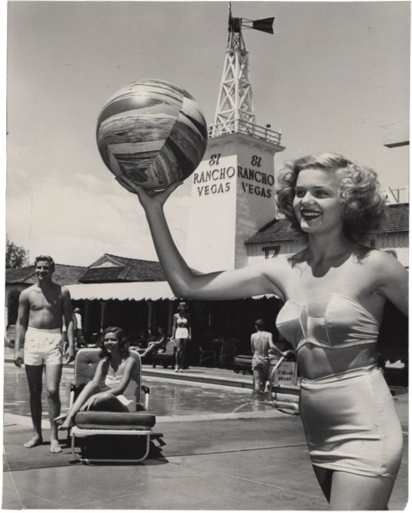 The first casino built on what would become the Las Vegas Strip. Images of this historically important site are scarce, as it opened in 1941 and would burn down in 1960. Crystal clear image with original paper caption. Couple of tiny corner creases o/w EX-MT. 8x10".