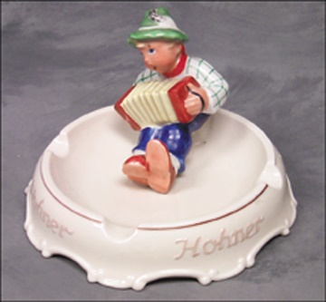 This beautiful glazed ceramic advertising display sports a delightful accordian playing boy. Made in Germany. NRMT.