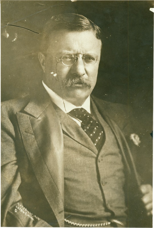 Stunning portrait of our Renaissance Man President is from the photo house, Harris & Ewing. Cartouche on front tells the story. Stray ink mark at top left o/w EX-MT. 8x5.5".