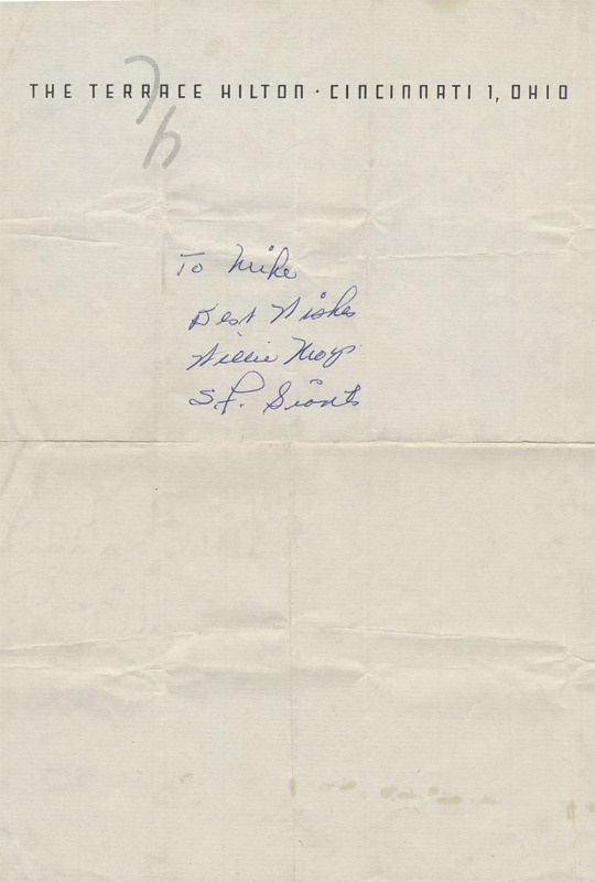A stunning gathering of autographs (11) of standouts from the Negro Leagues, and, with most appearing on 3x5” sheets of white paper, a bright, bold showing, especially the 10/10 inking of recent Hall of Famer Effa Manley, who co-owned the Negro League’s Newark Eagles from 1936 to 1948, and with grace combined great baseball with social awareness. Others include Chet Brewer, Willie Mays (personalized on hotel stationary), Jake Stevens, Quincy Trouppe with W. McDonald together on one sheet, Buck O'Neil, Judy Johnson, Monte Irvin, Clint Thomas, and Gene Benson. All signatures obtained in person at Negro League reunions, and each instilled with history.