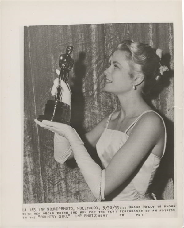 For her brilliant performance in "Country Girl". Oscar never had better looking company. Front caption. 7x9”. Tiny tear o/w EX-MT.