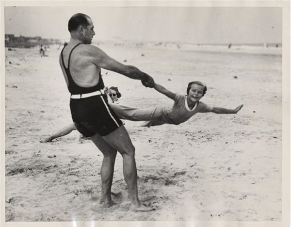 The stellar movie star turned royalty. This is an amazing collection of 47 images hand picked from this fabulous photo archive. Many are with her husband Prince Rainier, many from her Hollywood days and with her family. Most are from the 1950's, some 1960's, and a couple early 1970's. There are such impressive pieces as actress of the year for "Country Girl", birth of Caroline (1957), with President Eisenhower (3), her wedding (4), her wedding dress and jewels (2), with Ingrid Bergman (1971), with Franco of Spain, with Adlai Stevenson, with her dad Olympian Jack Kelly (2). Great stuff. Even a piece of sheet music with promotional cover letter for her wedding (1956). Most are wire photos. Overall 7x9” and EX-MT.