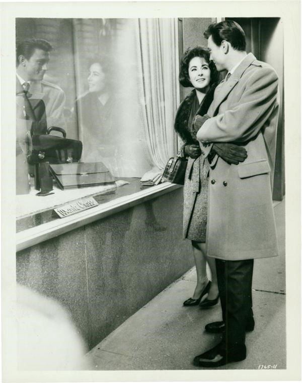Classic trash stars Elizabeth Taylor, Laurence Harvey and Eddie Fisher. Liz is in six of them including one bomber wearing bed sheet. 8x10”. Overall EX-MT.